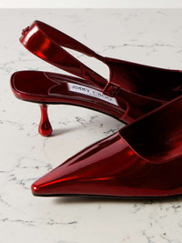 EDITORS'NOTES The droplet-shaped heels on Jimmy Choo's 'Amel' pumps are new for the Winter '24 collection - they're inspired by dripping liquid, captured in time. They're meticulously crafted from glossy mirrored-leather and have sleek pointed toes. Look closely and you'll notice the tonal logos on the slingback straps. SIZE & FIT - Fits true to size, take your normal size - Italian sizing DETAILS & CARE - Heel measures approximately 50mm/ 2 inches - Red mirrored-leather (Calf, Goat) - Buckle-fastening slingback strap