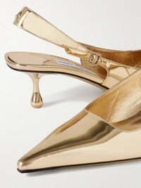 Amel 50 Logo-embellished Metallic Leather Slingback Pumps