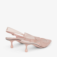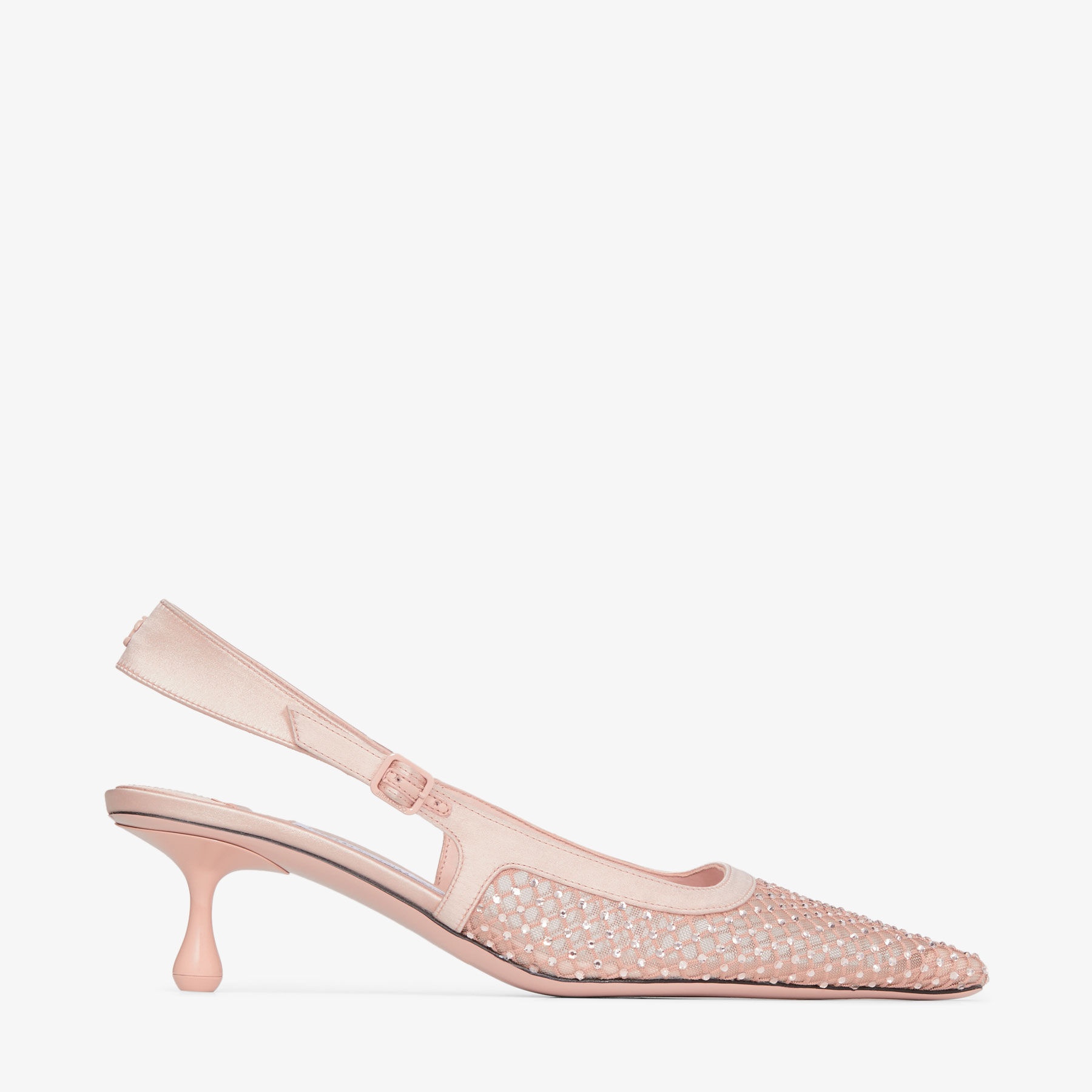 Details, Care & Fit The Amel elevates the timeless sling back silhouette with a graphic drop heel and square-cut vamp. Crafted from satin and crystal-embellished mesh, this pointed pump is a modern complement to your wardrobe. It features a sling back adjustable strap and is set on an ultra-wearable low heel. - Crystal-embellished mesh - Satin - Pointed toe - Leather and rubber sole - Drop heel - Heel height measures: 50mm / 1.9 inches - Made in Italy