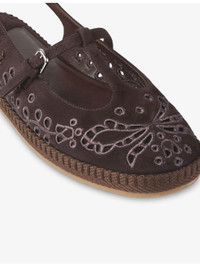 PRODUCT DETAILS - Jimmy Choo suede espadrilles - 100% leather - Adjustable buckle fastening - Round closed toe, adjustable straps, slingback strap, intricate Sangallo embroidery, scalloped edge, jute sole - Specialist leather clean - Made in Spain - Upper: 100% leather - Lining: 100% leather - Sole: 100% jute Ref: R04472922
