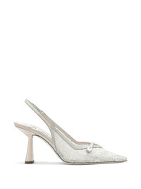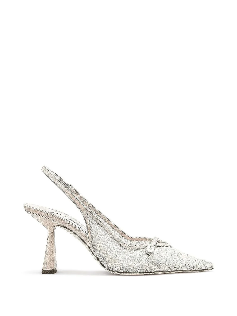 Amita lace pearl slingback pumps Highlights - Ivory white - Lace overlay - Pointed toe - 85mm heel - Slingback strap - Faux pearl embellishment Imported Composition Outer: Mesh 100% Lining: Calf Leather 100% Sole: Calf Leather 100%, Rubber 100% SIZE & FIT Measurement HEEL 3.34 in(8.5 cm)