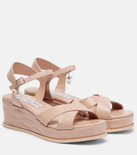 Crafted in Italy from leather, the Astra wedge sandals from Jimmy Choo showcase crystal charms suspended from their straps. This design features leather insoles and rubber soles on square open-toe silhouettes. Product Details - Upper: leather (nappa) - Lining: leather - Sole: leather insole, rubber sole - Toe shape: square open toe - Made in Spain - Includes: dust bag, shoe box - Designer color name: Macaron - Item color: pink - Item number: P01071231 Size & Fit - True to size - European sizes - 3,5cm-1.5" platform (size EU 38) - 6cm-2.5" wedge heel (size EU 38)