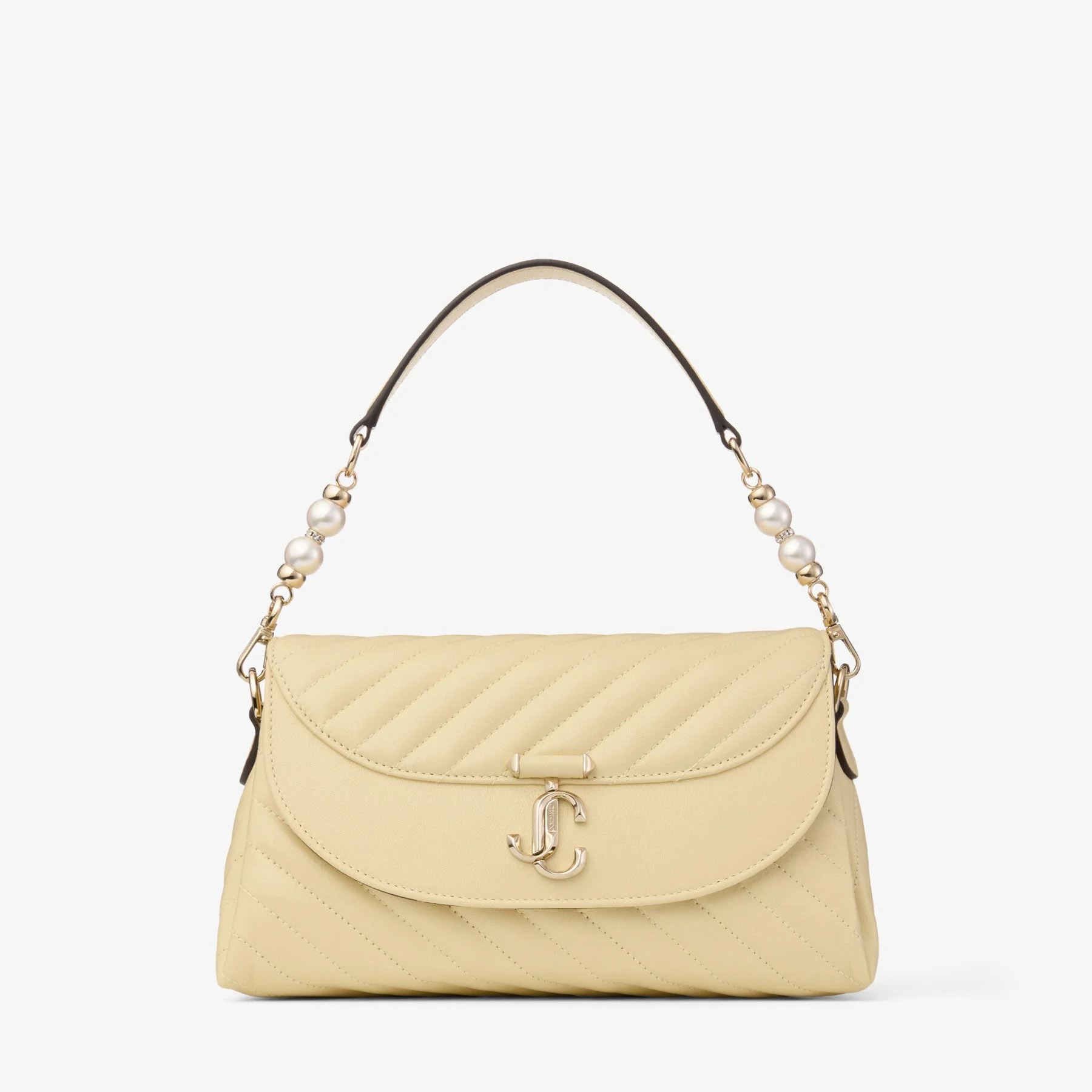 Details, Care & Fit A timeless classic with modern spirit, the Avenue Curve is cast in soft quilted biker leather and finished with a signature JC emblem. The elegant silhouette is elevated by a pearl embellished chain detail, balancing tough-luxe texture with timeless femininity. - Quilted biker leather - Clutch - Chain shoulder strap - JC emblem - Bag Measures: L 24 x H 15 x W 10cm - Pearl detailing - By purchasing this product, you join our commitment to support responsible leather manufacturing through the Leather Working Group - Made in Italy