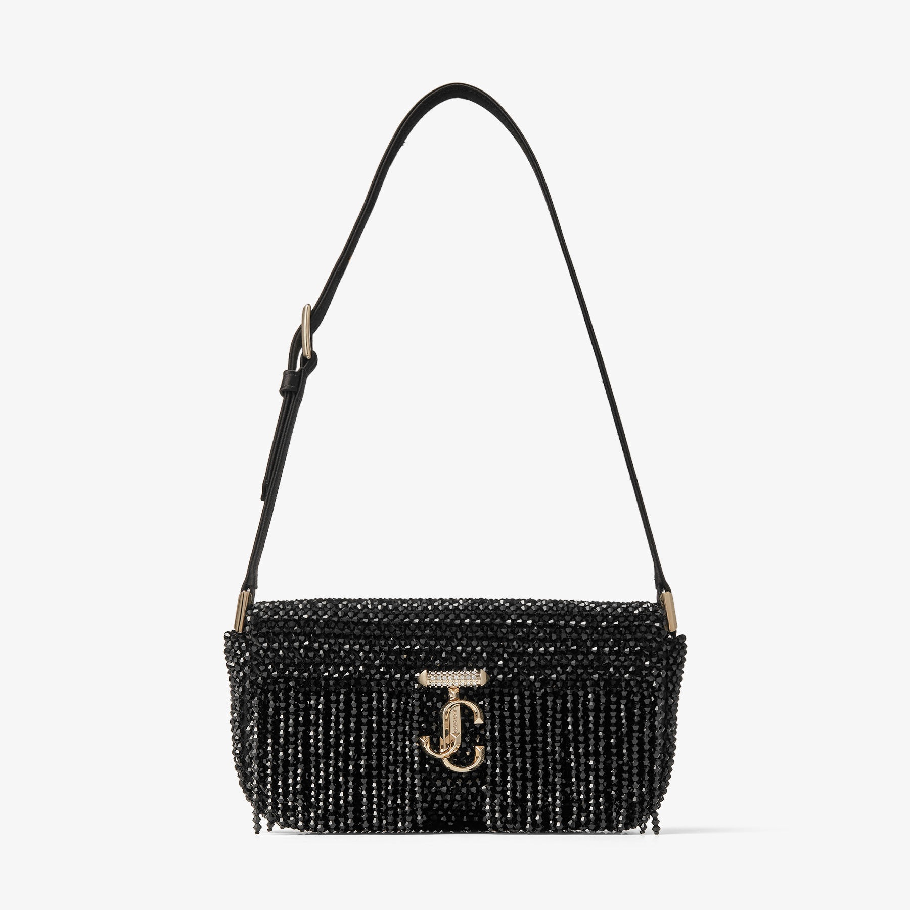 Details, Care & Fit Item No. AVENUEMINISHOULDERATU A smaller iteration of our signature Avenue Crossbody, the Avenue Mini Shoulder is an elevated essential. Crafted from satin covered in crystal fringe - a juxtaposition to its structured silhouette - makes for a sophisticated yet playfully chic look. It features an adjustable strap with a front flap accented by our crystal-embellished gold JC bar. Closed by a magnetic button, the interior is complete with an internal compartment with a pocket that adds to the style’s versatility. Fresh and modern – this handbag can lend itself to both smart, tailored looks and off-duty ensembles. - Satin - Crystal fringe - Front flap with magnetic closure - Gold JC emblem bevelled hardware - Adjustable shoulder strap - Recycled cotton lining - Bag measures: L 20.5 x H 11 x W 5cm - Strap measures: 23cm - Made in Italy