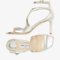 Details, Care & Fit Daring and distinct, our AZIA sandals are presented in champagne glitter leather and showcase signature delicate curved straps that flatteringly snake up your feet. This Italian-crafted pair features a slim heel and a modern square toe. - Glitter leather - Ankle strap with buckle fastening - Square toe - Open toe - Slim heel - Heel height measures: 75mm / 3 inches - Made in Italy