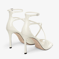 Details, Care & Fit Feminine and distinct, our Azia sandals are presented in latte patent leather and showcase signature delicate curved straps that flatteringly snake up your feet. This Italian-crafted pair features a slim heel and a modern square toe. - Patent leather - Double straps with elastic interior - Hand-applied leather sole - Adjustable ankle fastening - Square toe - Heel height measures: 95mm/3.7 inches - Made in Italy - By purchasing this product, you join our commitment to support responsible leather manufacturing through the Leather Working Group