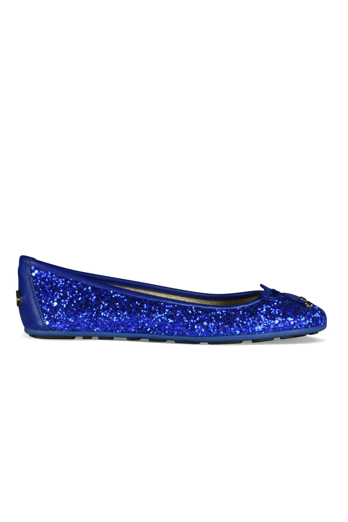Blue ballerinas Jimmy Choo. Sequined model. Decorative bow on the front. Leather heel with gold logo plate. Made in Italy.