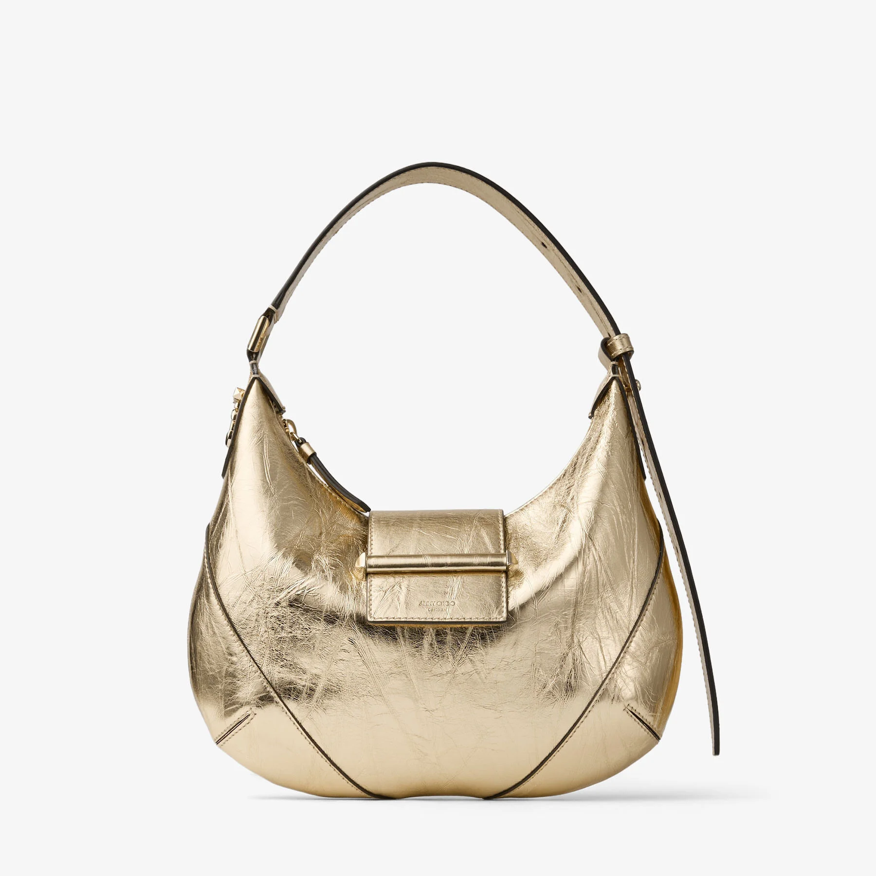 Details, Care & Fit The Bar hobo takes its name from the ‘bar’ closure, a distinctive design featuring gold hardware wrapped in tonal leather. Seam stitching lends a tailored detail to this modern yet timeless silhouette. Presented in vintage metallic leather with an adjustable shoulder strap and zip closure, the interior is also leather-lined and features a side pocket for organisation. - Vintage metallic leather - Polished gold-tone bar - JC monogram - Adjustable shoulder strap - Bag Measures: L 27 x H 17 x W 4cm - Made in Italy