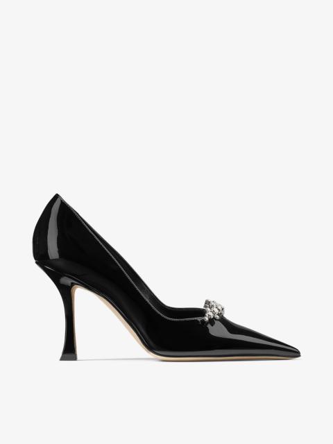 Details, Care & Fit The Belinda is a modern pump crafted in high-shine patent. Set on a 90mm heel, it features a sharply pointed toe and a crystal-embellished strap for subtle sparkle. - Patent leather - Pointed toe - Crystal embellishment - Leather lining - Leather and rubber sole - Heel height measures: 95mm / 3.7 inches - Made in Italy