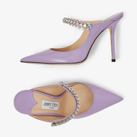 Details, Care & Fit Item No. BING100PAT BING in wisteria patent leather is modern and stylish. Its beautiful slip on design makes it a unique style and emphasizes the leg lengthening effect with its 100mm heel height. Featuring a crystal detailing strap across the top of the foot for a hint of glamour, pair with a little black dress for a striking look. - Patent leather - Crystal strap - Pointed toe - Slip-on style - Leather lined - Leather sole - Heel height measures: 100mm/3.9 inches - Made in Italy