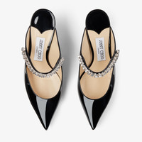 Details, Care & Fit BING in black patent leather is modern and stylish. Its beautiful slip on design makes it a unique style and emphasises the strong silhouette from the 65mm heel. Featuring a crystal detailing strap across the top of the foot for a hint of glamour, making it a perfect pairing with a dress for a sophisticated evening out. - Patent leather - Crystal-embellished strap - Pointed toe - Slip on - Slim heel - Leather lined - Leather sole - Heel height measures: 65mm/2.6 inches - Made in Italy