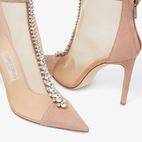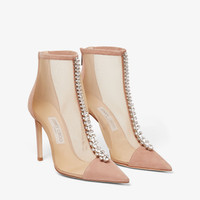 Ballet Pink Suede and Mesh Ankle Boots with Crystal Embellishment