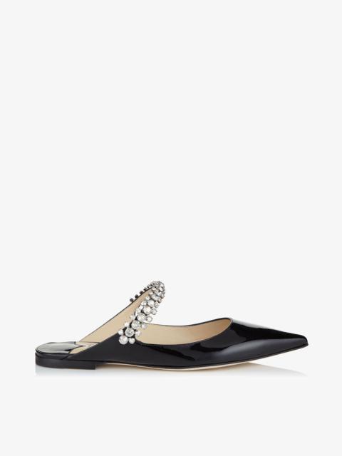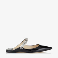 Black Patent Leather Mules with Crystal Strap