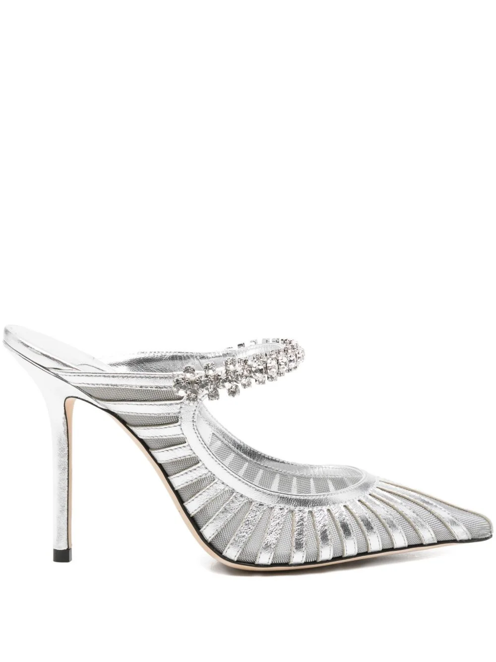 100mm Bing crystal-embellished mules Highlights - Silver-tone - Mesh and leather upper - Crystal-embellished strap - Stiletto heel - Pointed toe Made in Italy Composition Outer: Mesh 100%, Calf Leather 100%, Crystal 100% Sole: Calf Leather 100% Lining: Calf Leather 100% SIZE & FIT Measurement HEEL 3.93 in(10 cm)