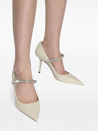 Bing 85mm leather pumps Highlights - Beige - Leather - Patent finish - Crystal-embellished ankle strap - Pointed toe - Branded insole - High heel Made In Italy Composition Lining: Leather 100% Outer: Patent Leather 100% Sole: Leather 100% SIZE & FIT Measurement HEEL 3.74 in(9.5 cm)