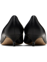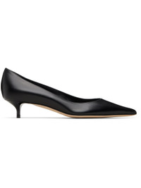 Buffed calfskin heels. · Pointed toe · Logo patch at padded leather footbed · Covered kitten heel with rubber injection · Nubuck sole · Heel: H1.25" Supplier color: Black Leather. Made in Italy 261528F122023