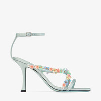 Details, Care & Fit A barely-there sandal transformed into a field of flowers, the Blanche sandal is a new style featuring individually hand-sewn resin blooms and multicoloured beads. Set on a delicate 90mm heel, these satin sandals are a statement style that will elevate any wardrobe. - Satin - Flower embellishments - Glass beads - Heel height measurements: 90mm/ 3.5 mm
