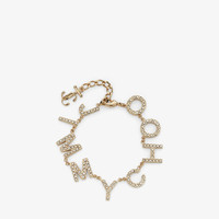 Details, Care & Fit Item No. JIMMYCHOOBRACELETMJI Our gold-finish bracelet is timeless and elegant, featuring our iconic emblem and crystal embellishment. The refined and emblematic bracelet can be worn with the coordinating JC Chain Necklace and JC Chain Earrings for a complete Jimmy Choo look. - Nickel-free brass with gold metal finishing - Comes in a Jimmy Choo pouch and box - Due to its handcrafted nature, every style is unique and there may be small differences between the pieces - Made in Italy