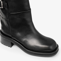 Details, Care & Fit Crafted from shiny calf leather, the Brooklyn boot is a an elevated take on the timeless biker silhouette. It is designed with an adjustable buckle strap, faux back zip and rubber sole. - Shiny calf leather - Round toe - Buckle - Faux back zip - Pull on style - Leather lining - Rubber sole - Heel height measures: 50mm/1.9 inches - Made in Italy