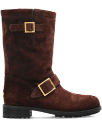 buckle mid biker boots Highlights - Chocolate - Buckle detail - Gold-tone hardware - Ridged sole - Pull-on style - Mid-calf height Made in Italy Composition Outer: Calf Suede 100% Lining: Calf Leather 100% Sole: Rubber 100%