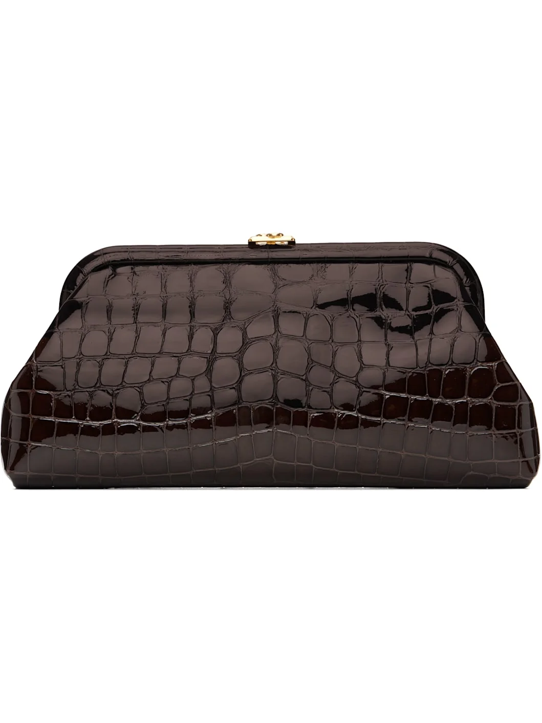 Croc-embossed patent leather clutch. · Curb chain shoulder strap · Clasp closure · Patch pocket at interior · Grained leather lining · Logo-engraved gold-tone hardware · H5.25" x W10.5" x D2" Supplier color: Sambuco/Gold Leather. Made in Italy 261528F044003