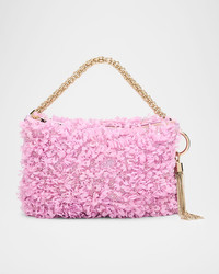 This Jimmy Choo "Callie" tophandle bag is embroidered all over with petal ruffles, shimmering crystals, and beads Adorned with a chain tassel feature Chain top handle Zip top closure Viscose/silk Made in Italy