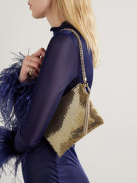 EDITORS'NOTES Chainmail is a perfect choice for party accessories because it catches the light from every angle - be it dim candlelight or brighter spotlights. Jimmy Choo's 'Callie' bag has a slouchy, unstructured shape with a chain strap that can be clipped close like a wristlet or unclipped to create extra space. It opens to a satin interior that will fit your phone, cards and a lip gloss. SIZE & FIT This item’s measurements are: - Handle Drop: 23cm / 9.1in - Max. Strap Length: 53cm / 20.9in - Height: 14.5cm / 5.7in - Width: 20.5cm / 8.1in DETAILS & CARE - Gold chainmail - Non-adjustable chain shoulder strap - Fully lined in satin - Zip fastening along top - Weighs approximately 1.5lbs/ 0.7kg
