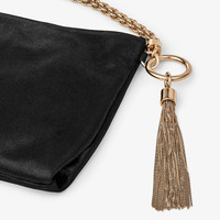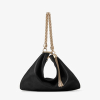 Details, Care & Fit Elegant and timeless, CALLIE in black shimmer suede is beautiful in its simplicity. There are two styling options to this bag, loop the chain through the hoop to create a handheld evening pouch or wear the chain draped over your arm. This multifunctional clutch is perfect to compliment an evening ensemble. - Shimmer suede - Multifunctional chain strap - 1 main internal compartment - Bag measures: L24 x H20 x W3.5cm - Strap drop measures: 9cm - Made in Italy