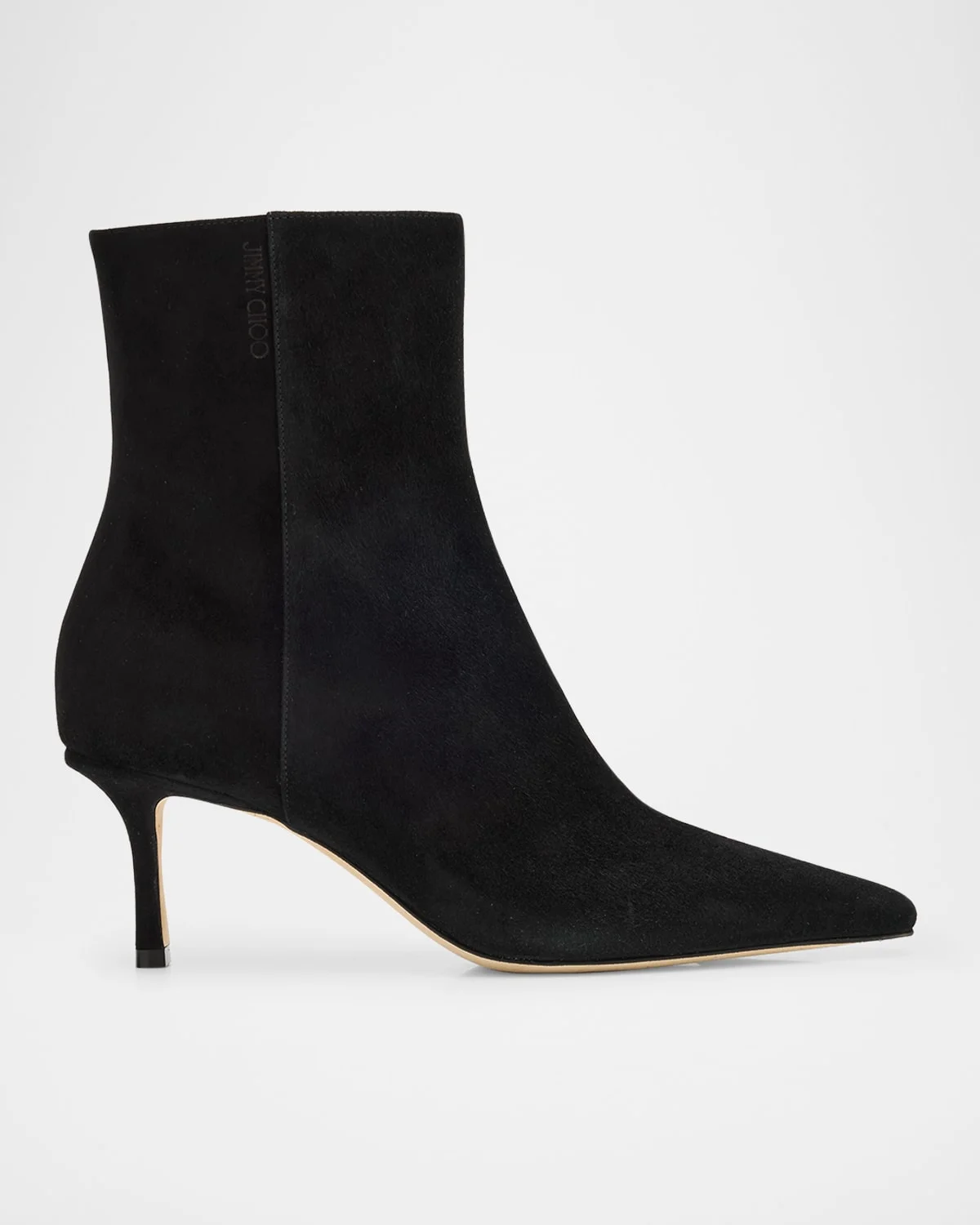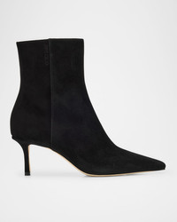 - Jimmy Choo "Camile" ankle boots in supple suede - 2.75 in / 70 mm covered stiletto heel - Pointed toe - Side zip eases dress - Made in Italy