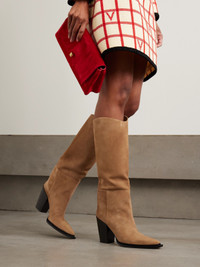 Jimmy Choo's 'Cece' boots take inspiration from equestrian styles with their slim shape and stacked heels. They've been crafted in Italy from butter-soft suede and are subtly debossed with the label's logo. Wear yours with a mini skirt or jeans.