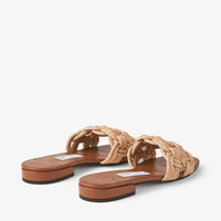 Tan Leather and Crochet Raffia Slide