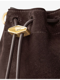 PRODUCT DETAILS - Jimmy Choo suede cross body bag - 100% suede - Drawstring closure - Detachable, adjustable cross body strap, cinched top, branded diamond-shaped hardware at drawstring, gold-toned hardware, one main interior compartment - Height 19cm, width 14cm, depth 3cm, strap drop length 50cm - Specialist leather clean - Made in Italy Ref: R04500278