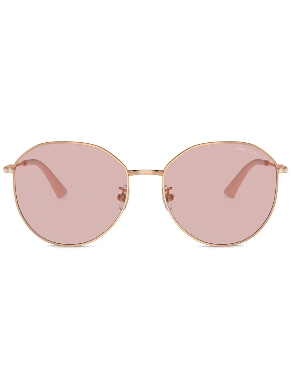 crystal-embellished sunglasses Highlights - Rose gold-tone - Metal - Round frame - Pink tinted lenses - Nose pads - Straight arms - Crystal embellishment - Curved tips - These glasses come with a protective case. Made in United Kingdom Composition Metal 100% SIZE & FIT Measurement Arm Length 5.7 in(14.5 cm) Bridge Width 0.7 in(1.8 cm) Lens Diameter 2.28 in(5.8 cm)