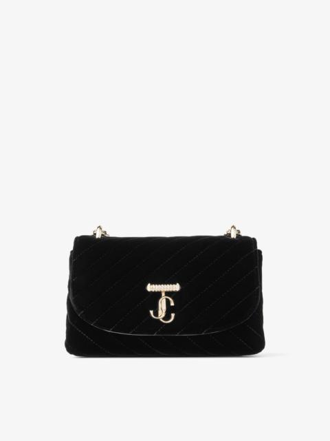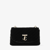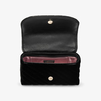 Black Quilted Velvet Crossbody Bag with Crystal JC Bar