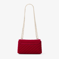 Ruby Red Quilted Velvet Crossbody Bag with Crystal JC Bar