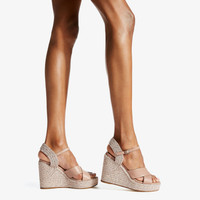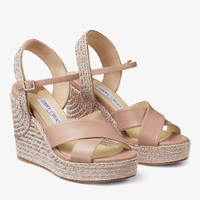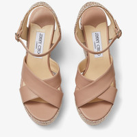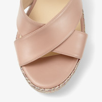Ballet Pink Nappa Leather Wedges with Metallic Rope Trim
