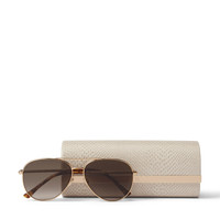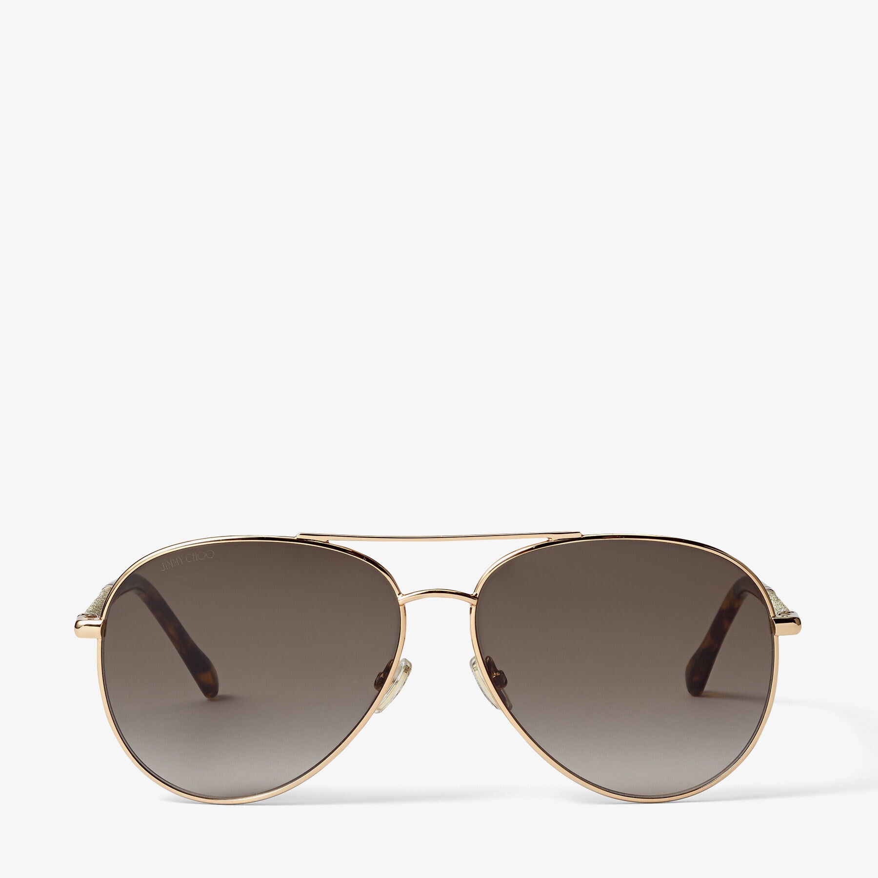 Details, Care & Fit Item No. DEVANS59E06J Our rose gold DEVAN aviator-style sunglasses are both striking and statement. Crafted in Italy, this pair features brown shaded lenses, gold glitter temples and brown havana tips with the lasered Jimmy Choo logo. Wear yours to elevate day-to-day dressing. - Rose gold stainless steel front - Gold glitter fabric insert - Rose gold metal temples - Havana tips with gold lasered Jimmy Choo logo - Brown shaded lenses - 100% UVA and UVB protection - Comes with Jimmy Choo case and cloth - Made in Italy