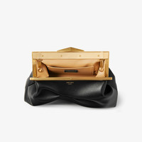 Details, Care & Fit The Diamond frame clutch bag in calf leather is a spacious design with a faceted frame and clasp closure. This soft silhouette features a detachable strap, and can be worn as a clutch or on the shoulder. - Calf leather - Detachable strap - Bespoke Diamond frame and clasp - Pleated, stitch and turn construction - Interior slip pocket - Bag measures: L 26 x H 13 x W 8 cm - Shoulder strap drop: 40cm - Made in Italy - By purchasing this product, you join our commitment to support responsible leather manufacturing through the Leather Working Group