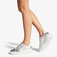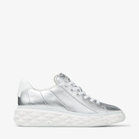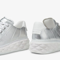 Details, Care & Fit Item No. DIAMONDLIGHTMAXIFMYW Our Diamond Light Maxi has evolved from the signature Diamond Light trainer. Crafted from a responsible Nappa in striking silver, they’re shaped with a round toe and rest on a unique platform sole that resembles diamonds set in stone and elevates the trainer to give extra height. Super comfortable, upgrade your wardrobe with our platform trainers that bring personality to your outfits. Italian sizing. Fits true to size. - Metallic Nappa - Lace-up style - Multifaceted rubber sole - Round toe - Jimmy Choo embossing on heel, side and front - Platform measures: 3cm at front, 4.5cm at back - By purchasing this product, you are supporting sustainable leather manufacturing through the Leather Working Group