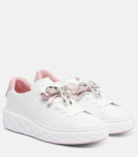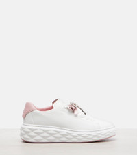 Jimmy Choo is a global luxury fashion brand defined by glamour, optimism, and joy. The Diamond Light Maxi sneakers are a playful design crafted from leather and finished with crystal-embellished bow details. Product Details - Upper: lamb leather - Lining: fabric - Sole: fabric insole, rubber sole - Color: white - Toe shape: round toe - Made in China - Includes: shoe box, dust bag, extra laces - Designer color name: X White/Rose Mix - Item color: white, pink - Closure: lace-up - Item number: P01125561 Size & Fit - True to size - European sizes - 3cm-1" platform - 5cm-2" wedge heel