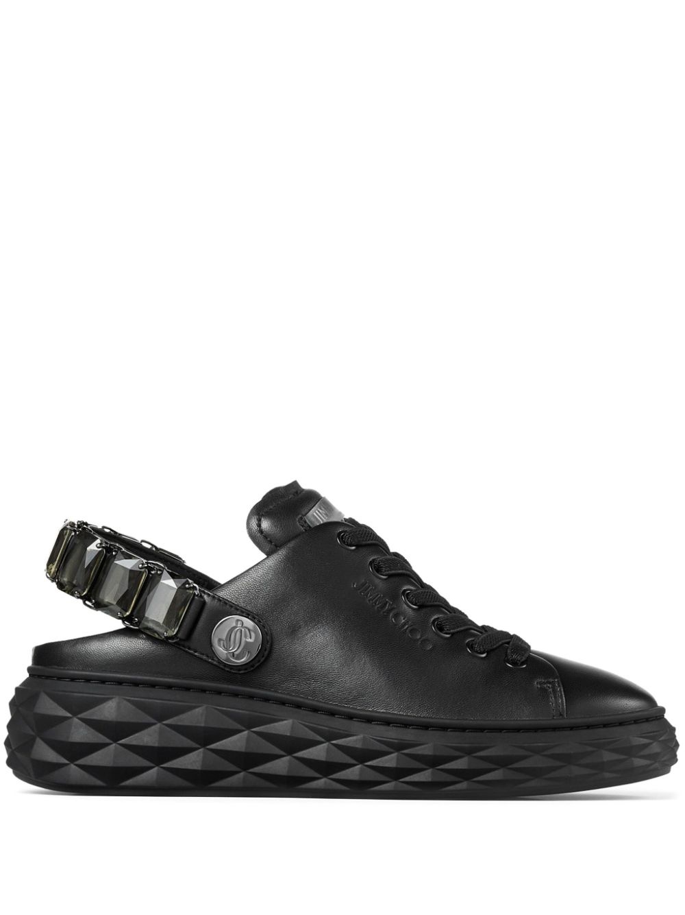 Diamond Maxi Crystal leather sneakers Highlights - Black - Leather - Crystal embellishment - Round toe - Front lace-up fastening - Logo patch at the tongue - Slingback strap - Open back - Branded insole - Eva midsole - Rubber sole Imported Composition Lining: Fabric 80%, Lambskin 20% Sole: Rubber 100% Outer: Lambskin 100%