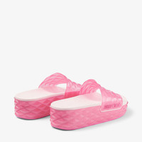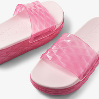 Details, Care & Fit Item No. DIAMONDSLIDEFRUB Elevate your weekend and getaway capsule with the Diamond slides. Crafted from rubber, the silhouette is evocative of the scultpted sole of ourDiamond Maxi and is complemented by subtle branding. - Rubber - Diamond motif - Platform sole - Embossed Jimmy Choo branding - Platform height measures: 55mm / 2.1 inches