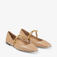 Nappa leather ballerina flats in tan. · Square toe · Handcrafted cable chain strap at vamp · Logo patch at leather footbed · Suede and buffed leather lining · Leather sole with rubber injection Part of the Diamond collection. Supplier color: Biscuit Upper: leather. Sole: leather, rubber. Made in Italy 242528F118027