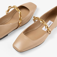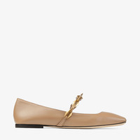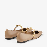 Biscuit Nappa Leather Flats with Diamond Chain