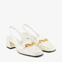 Latte Soft Patent Leather Sling Back Pumps with Chain Embellishment