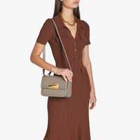 Taupe Box Calf Leather Top Handle Bag