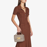 Details, Care & Fit Item No. DIAMONDTOPHANDLECZR Timeless in luxe leather, our Diamond top handle bag is complemented by distinct hardware, signature to the collection. With a top handle and detachable shoulder strap, it's a versatile style that can be worn endlessly. - Box calf leather - 'Diamond' hardware - Top handle - Detachable crossbody strap - Foldover button closure - Bag measures: L 22cm W 9cm H 16cm - Made in Italy