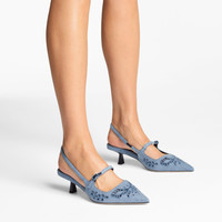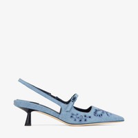 Details, Care & Fit Didi in denim is a modern design with a pointed toe silhouette. This slingback shoe features a strap fastening and a graphic kick heel. - Denim - Sangallo embroidery - Pointed toe - Elasticated slingback strap - Kick heel - Leather sole and lining - Heel height meaures: 45mm/1.7 inches - Made in Italy