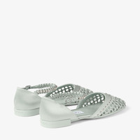 Light Verde Satin Ballet Flats with Crystal Embellishment