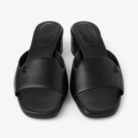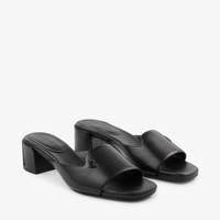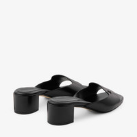 Details, Care & Fit Crafted in supple nappa leather and defined by a sculptural square toe, the Dina sandal brings a modern infusion to the classic mule silhouette. Set on a comfortable block heel, it offers seamless day-to-night styling. - Nappa Leather - Round toe - Slip on - Rubber sole - Heel height measures: 35mm / 1.3 inches - Made in Italy